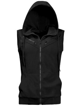 ソウテン ノースリーブ ベスト タンクトップ フード付き 袖なしパーカー 無地 トレーニング フィットネス メンズ ブラック XXL/50