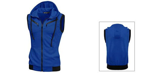 ソウテン ノースリーブ ベスト タンクトップ フード付き 袖なしパーカー 無地 トレーニング フィットネス メンズ ブルー XXL/50